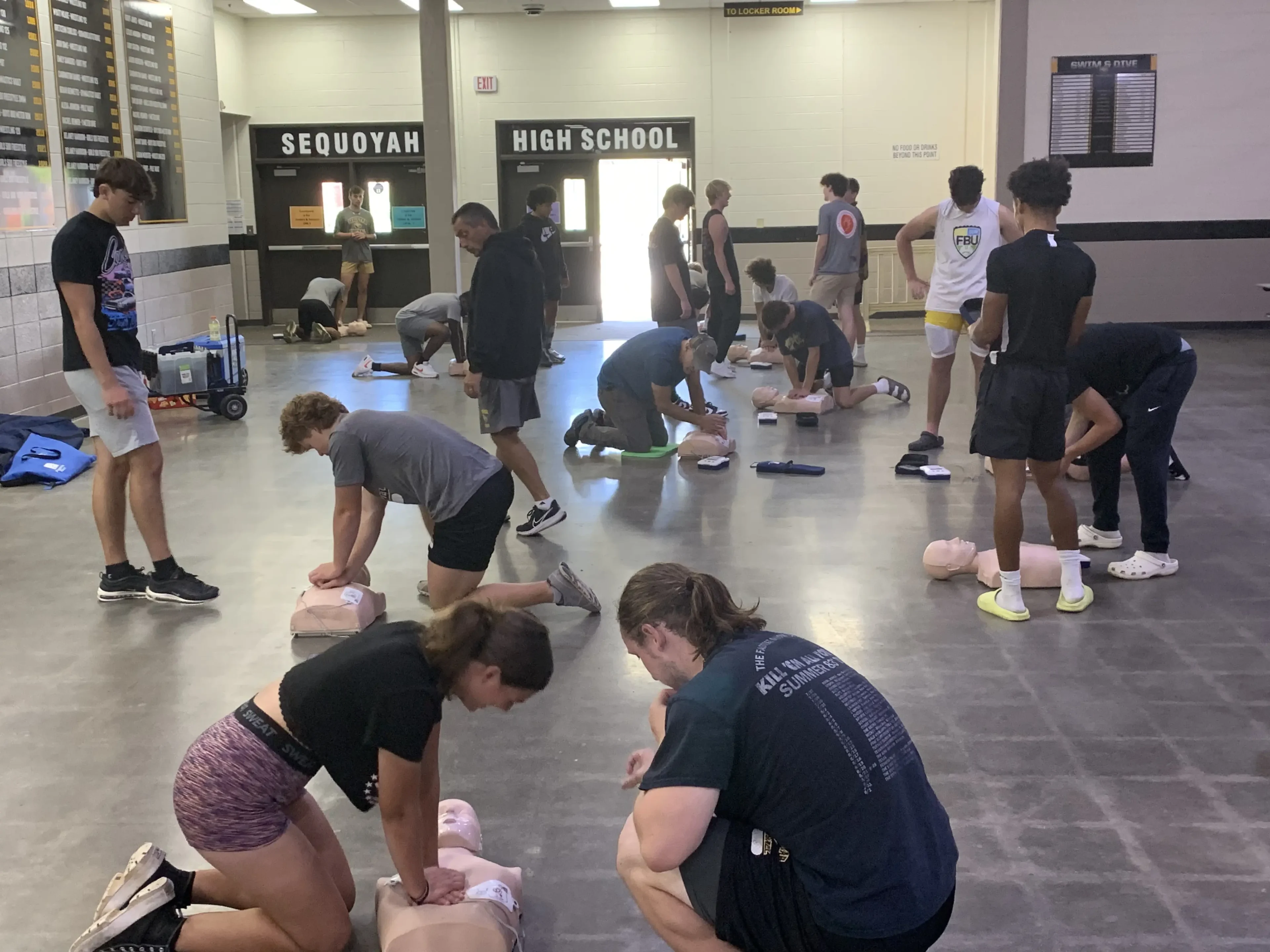 Students practicing CPR on mannequins