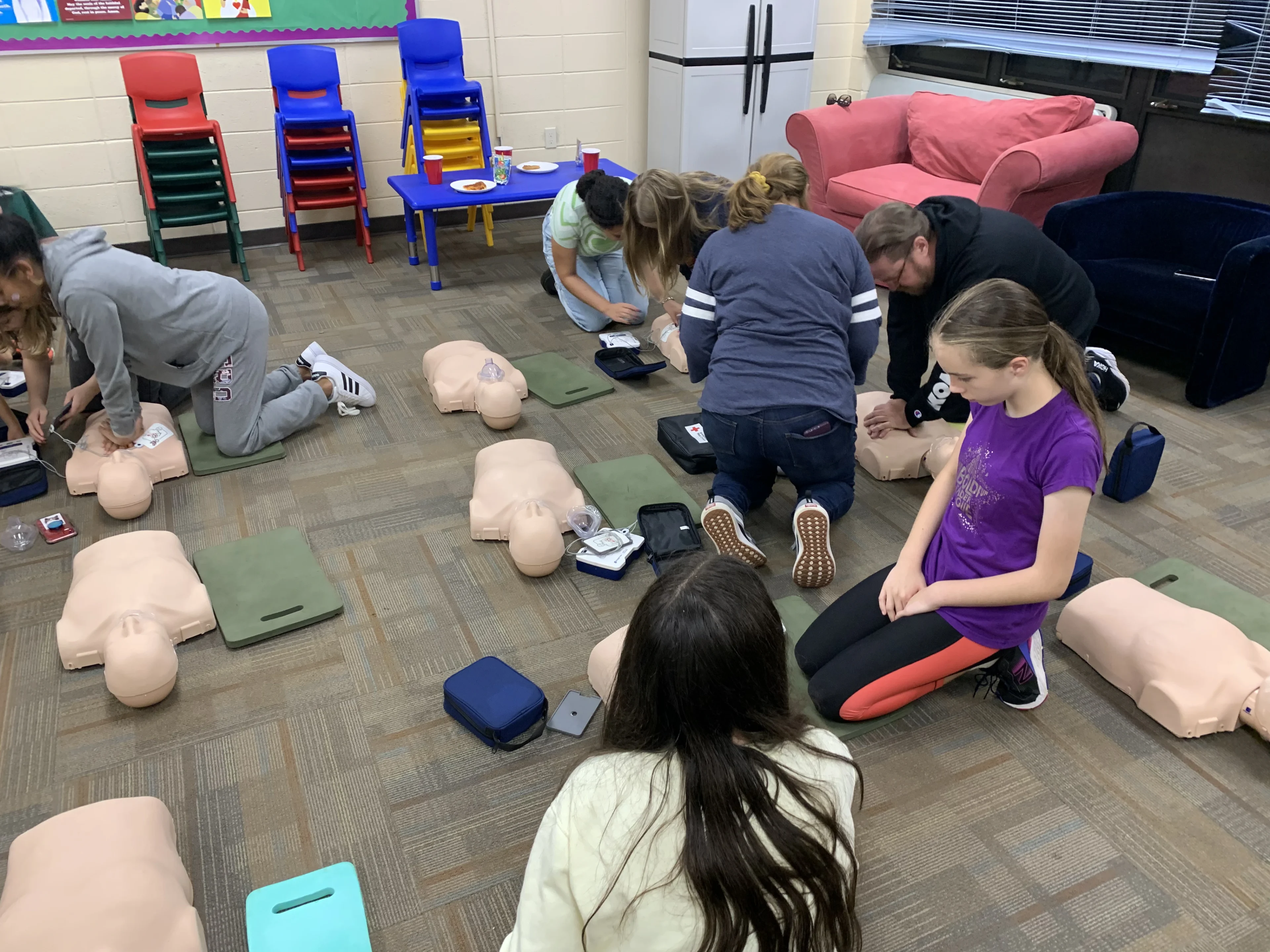 People learning CPR in classroom setting